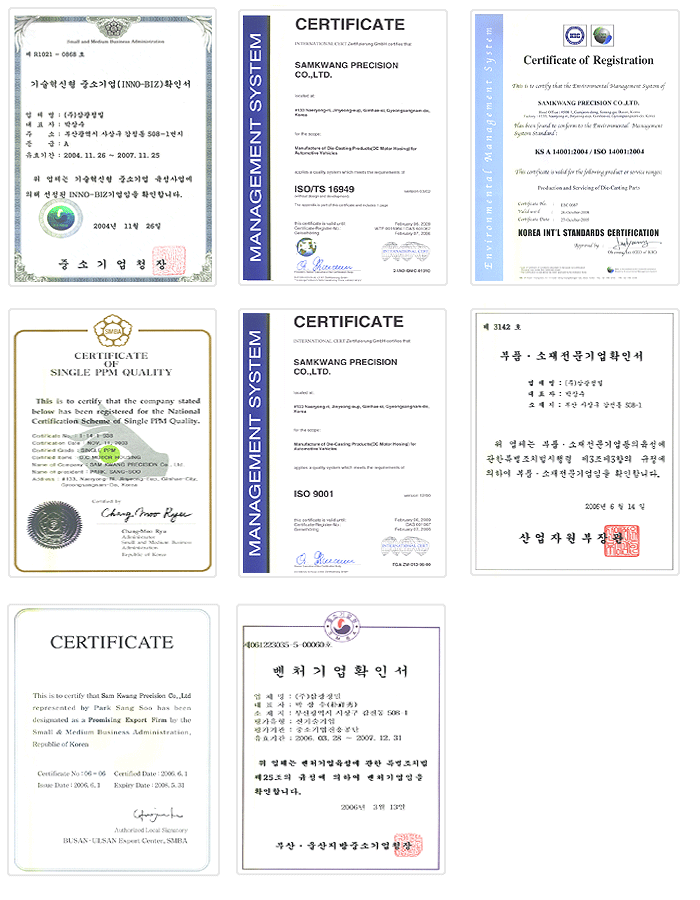 ㈜삼광정밀은 기술평가 우수 벤처기업, 및 기술혁신형 중소기업으로